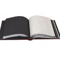 60 kartonowych stron, 30 kart przekładanych pergaminem w kolorze czarnym.